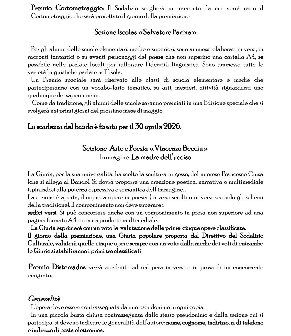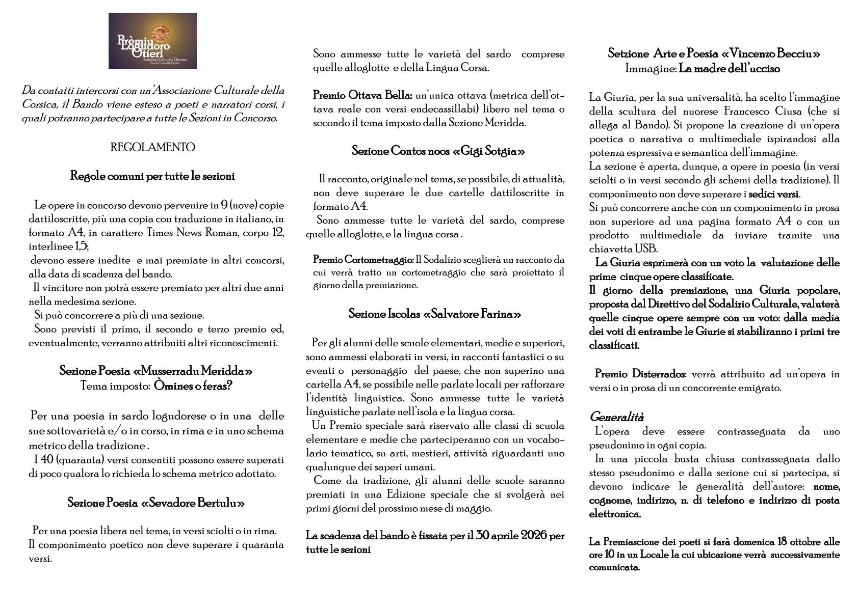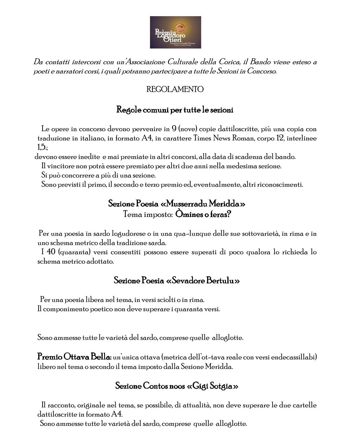 Concorso Premio Logudoro tutte le sezioni